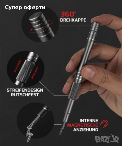 Магнитна подложка: за сигурно съхранение на малките винтове.