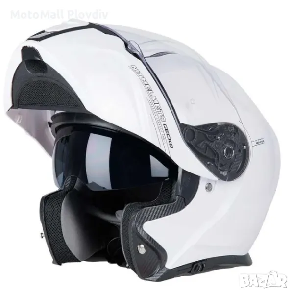 Каска модуларна MT Gecko бял гланц/черен мат мото мотор S/M/L/XL