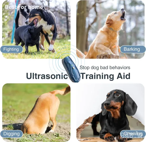 Ултразвуковото устройство против лай Queenmew е безвреден инструмент за обучение за спиране на нежеланото лаене. Опитайте тази запушалка за контрол на кучешкия лай и нежно се сбогувайте с този безкраен лай. Характеристика на това ултразвуково устройство за контрол на кучешки лай 1. 100 процента безопасен и хуманен 2. Подобрена версия - Комбиниране на фиксирана честота (25 KHz) с променлива честота (15-25 KHz) 3. Ръчен с въже за китката - Лесен за държане/носене 4. Дълъг обхват на управление: до 16,4 фута 5. Работа с един бутон - Лесен за използване 6. Издръжлив и лек за употреба на закрито и на открито 7. Подходящ за повечето кучета от всички породи. Как да използвате това ултразвуково устройство против лай? Натиснете бутона ON-OFF веднъж: Устройството за възпиране на кучешки лай ще светне в зелено + ще издаде звуков сигнал + ще издаде ултразвук (25khz). Продуктите функционират нормално. Натиснете и задръжте бутона ВКЛЮЧВАНЕ-ИЗКЛЮЧВАНЕ за 6 секунди: устройството за контрол на кучешкия лай ще излъчва ултразвуково излъчване, първите 3 секунди са с фиксирана честота (25khz), а последните 3 секунди са с променлива честота (15-25khz). Освободете бутона: устройството за контрол на кучешкия лай спира да работи. Трицветен светодиод: работи (зелена светлина), изтощена батерия (мига с червена светлина), зарежда се (червена светлина), напълно зареден (синя светлина). Принципи на работа на този възпиращ кучешки лай 1. Натиснете бутона за нежелан кучешки лай и високоговорителят издава звук, този звук може да бъде чут само от кучета, той е безшумен за хората. 2. Максималното работно време е 6 секунди всеки път. Започване с висок звук, който е безопасен и ефективен. Кучето трябва да спре да лае, тъй като ще свърже лая си с този неприятен шум. 3. След като това се повтори няколко пъти, кучето ще научи, че неговият лай ще му причини неприятни чувства. По този начин постепенно ще намали нежелания лай. Пакет: устройство против лай x1, въже за китка x1, USB кабел x1, ръководство x1 .