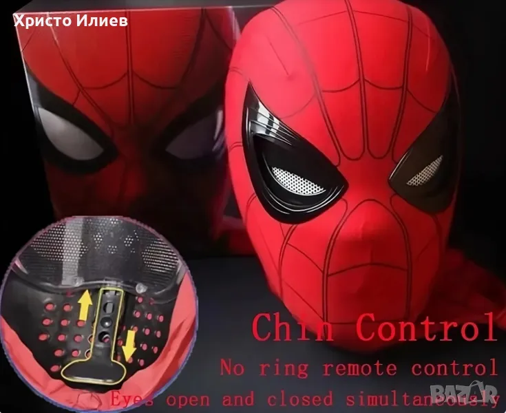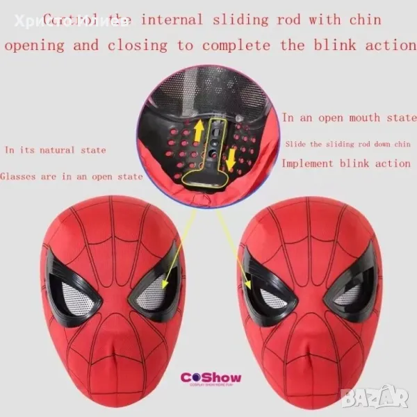 Представяме ви маската за мигащи и светещи очи на Спайдърмен със сензор се управлява на челото се натиска с пръст.