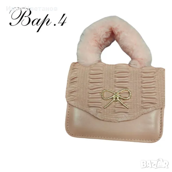 Кокетни чантички с красиви акценти и декорации, които придават елегантност и стил на всяка визия. Предлагат се в 7 различни варианта и множество цветови комбинации, за да отговорят на всеки вкус. Някои модели са с пухкави дръжки, които добавят модерна и уютна нотка, а изкуствените перлички украсяват моделите с изтънченост. Перфектен избор за вечерни излизания или специални поводи.