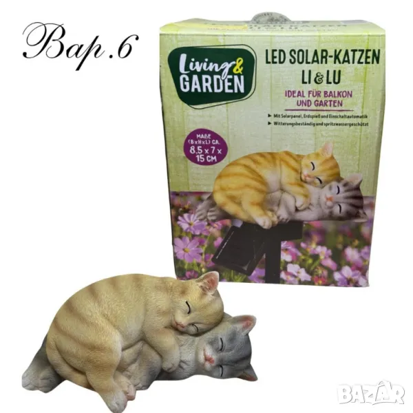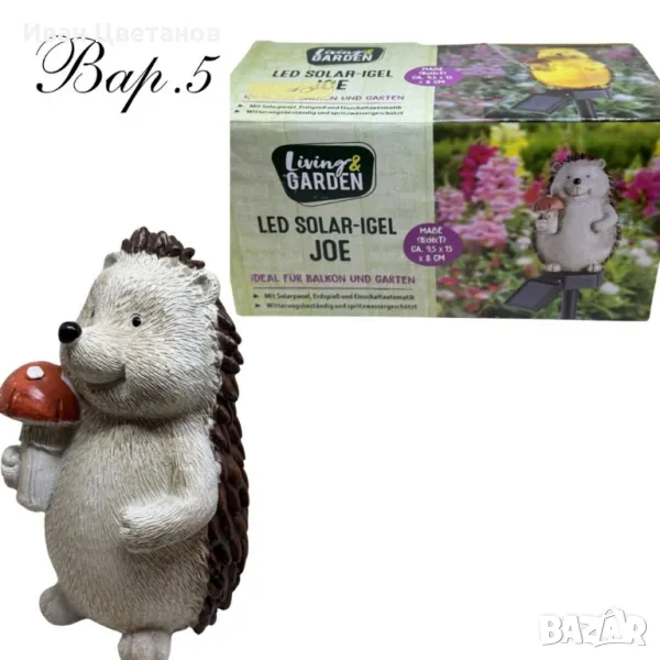 Соларни фигурки за градина – стилна и енергийно ефективна декорация, предлагат се в 13 различни варианта, които ще придадат уникален вид на вашата градина или двор. Височината им със стойката е 45 см, което ги прави видими и красиви отдалеч. Фигурките се захранват със слънчева енергия, което ги прави изключително икономични и екологични. Те са идеални за добавяне на уютна атмосфера през нощта, тъй като се осветяват автоматично при залез. Създайте магическа обстановка с тези изключително красиви и функционални соларни декоративни елементи.
