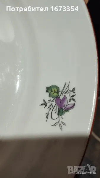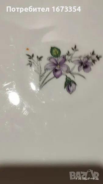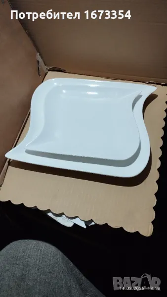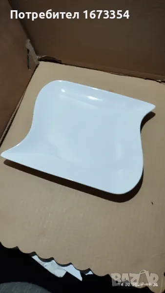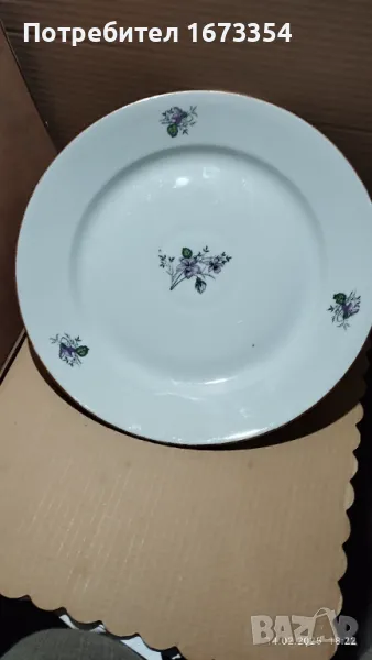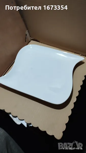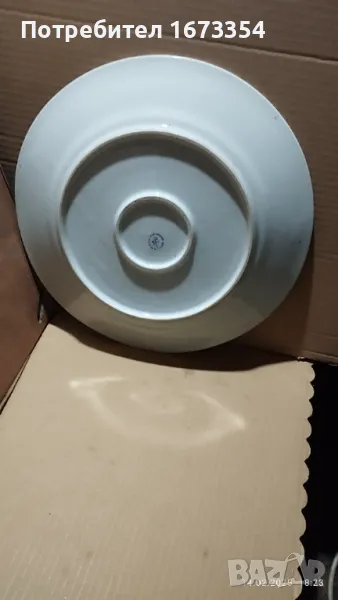2) Сет Фин порцелан качествен ( не е Български )малка и голяма чинии ( плата) с интересна форма нови с лек дефект на голямата на снимка номер 11 .Цена 15,00 лв за сета