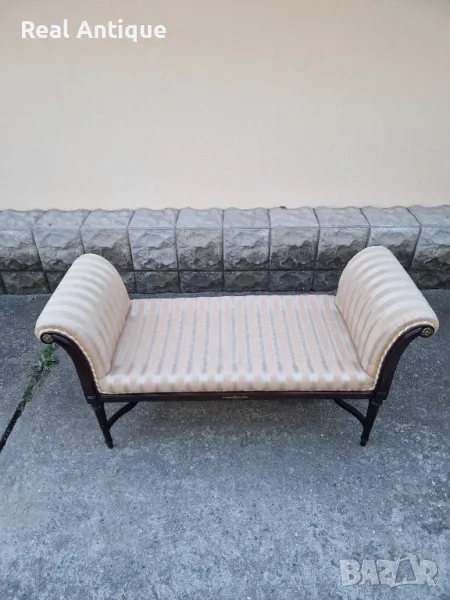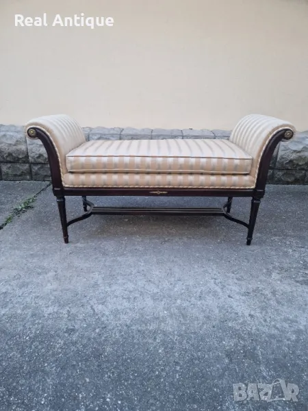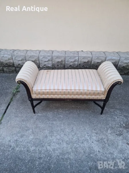Продавам страхотен антикварен испански марков диван канапе в състояние неразличимо от ново без никакви забележки с наличните маркировки. На снимките се вижда едно петънце което ще бъде почистено. Размери дължина 120 см височина 64 см и ширина 50 см. Прекрасно допълнение към интериора на Вашия дом офис вила ресторант хотел. Работя с всички куриери. Отговарям бързо.