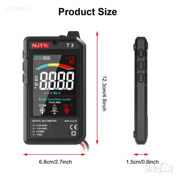 Висока точност с дисплей с 4000 отброявания: Мултицетът с волтметър NJTY разполага с дисплей с 4000 отброявания за точни измервания на AC и DC напрежение, както и съпротивление, осигурявайки надеждни резултати за различни задачи за електрическо тестване - Акумулаторна с Type-C зареждане: Този волтметър се предлага с вградена акумулаторна батерия и порт за зареждане Type-C за лесно и ефективно презареждане, елиминирайки необходимостта от батерии за еднократна употреба и насърчавайки спестяването на разходи.