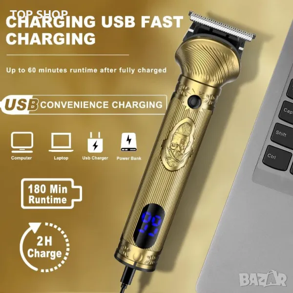 USB БЪРЗО ЗАРЕЖДАНЕ И LED ДИСПЛЕЙ - Безжичен тример за коса с висококачествена Li-long батерия, до около 180 минути време за бръснене само с около 2 часа зареждане. Дълготрайна литиева батерия е идеална за пътуване. LED дисплеят може да покаже ясно количеството оставаща мощност, да ви напомни да заредите, да избегнете неудобни ситуации на изключване на захранването по време на подстригване