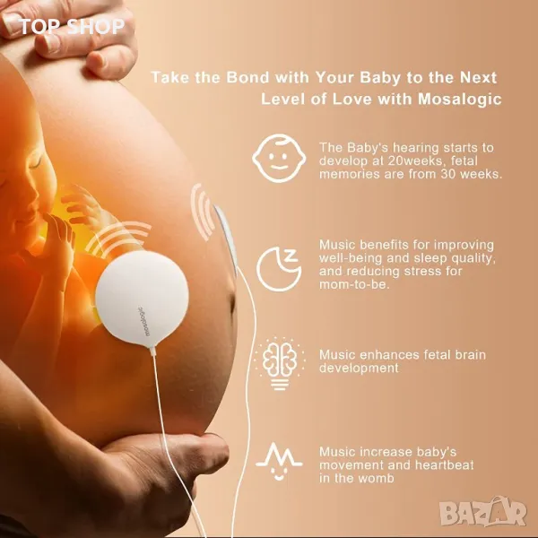 Слушалки Mosalogic Baby Bump за бременност и одобрени от FDA безопасни лепила, възпроизвеждане на музика за бебето вътре