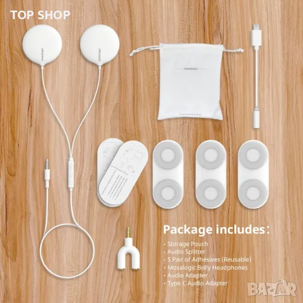 Свържете се с бебето си навсякъде: Прозрачното лепило на FDA може да прикрепи слушалки към корема ви, да пусне музика за вашето бебе, независимо дали отивате на разходка или на работа. Използвайте аудио сплитер, за да се наслаждавате на музика едновременно с вашето бебе.