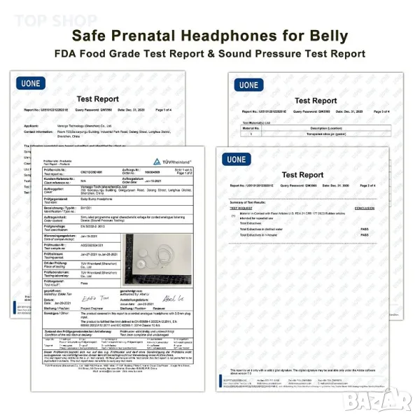 БЕЗОПАСНИ ПРЕНАТАЛНИ СЛУШАЛКИ: Безопасността е също толкова важна, колкото и качеството, ето защо FDA Certified Hydrogel Adhesive е нашият избор. Междувременно високоговорителят е преминал теста за звуково налягане, за да осигури удобна среда за слушане. Съвет: Ако вискозитетът е недостатъчен, избършете лепилото с мокри пръсти, за да възстановите лепкавостта му