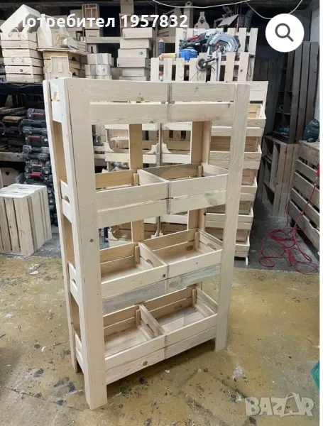 Двоен стелаж от щайги с хедър за всякакъв вид стока → Обява 49132801
