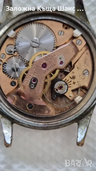 Часовника има ръчно навиващ се механизъм с 21 бижута .