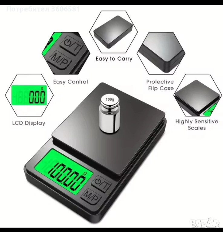 с точност от 0,01 грама и диапазон на теглене от 0,01 грама до 1000 грама, което ви позволява да претегляте по-точно.