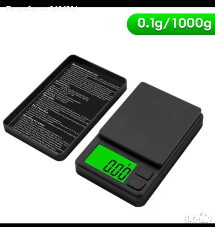 Прецизна Джобна мини Везна от 0,01гр до 1 кг /за грамове , унции, бижута/с LCD дисплей с подсветка