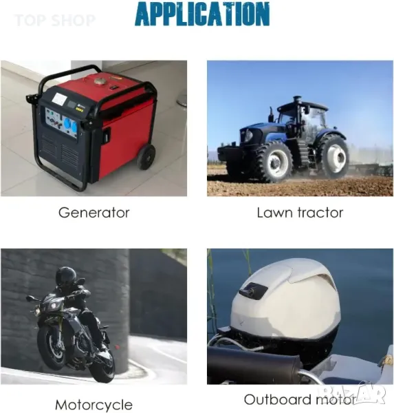 тахометър, уред за измерване на температурата на двигателя, предупредителни обороти/температура, напомняне за поддръжка, настройка на началните часове за велосипеди, тревни трактори, компресор, генератор, моторни шейни и работещи на газ