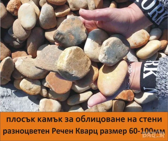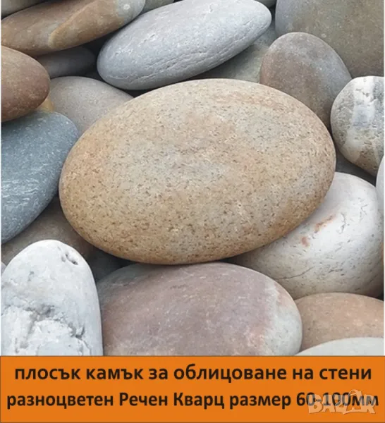 Плоски камъни за Декорация, Облицоване на стени и Настилки от камък. С заоблена форма, с разнообразни цветове, с различни размери..