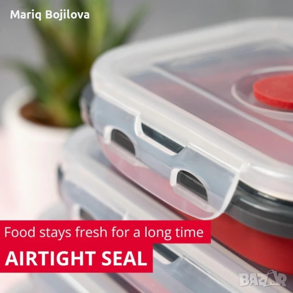 Материал: Полипропилен (PP) и силикон;Безопасност: Без BPA, подходящ за хранителни продукти;Функционалност: Подходящ за съдомиялна машина, микровълнова фурна и фризер;Форма: Правоъгълна;Херметично затваряне: Да;Сгъваема конструкция: Да.
