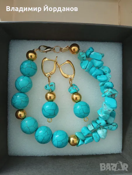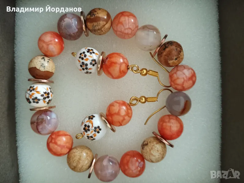 гривни и комплект с обеци ръчна изработка от естествени камъни → Обява 49135222