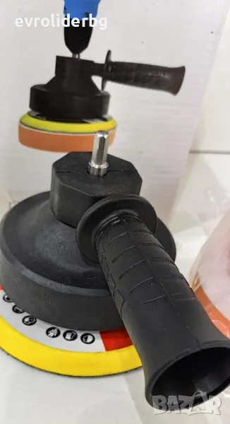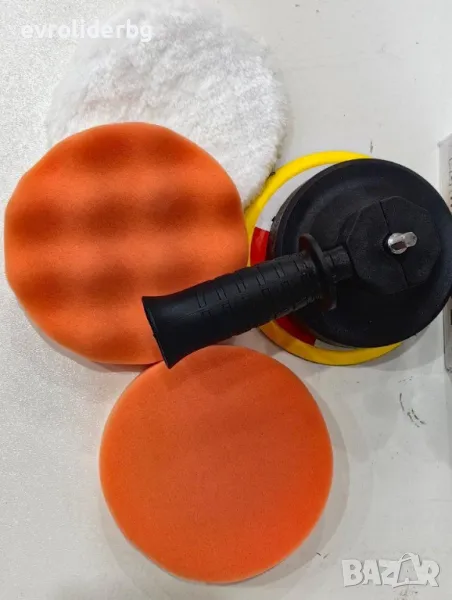 ПРИСТАВКА ЗА ПОЛИРАНЕ С ЕКСЦЕНТРИК И ДРЪЖКА ЗА ВИНТОВЕРТ И БОРМАШИНА, КОМПЛЕКТ С ТРИ РАЗЛИЧНИ ПОЛИРАЩИ ПОДЛОЖКИ!