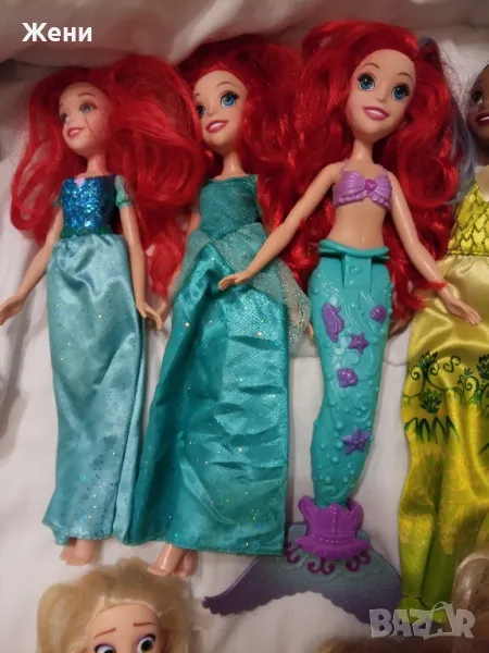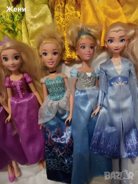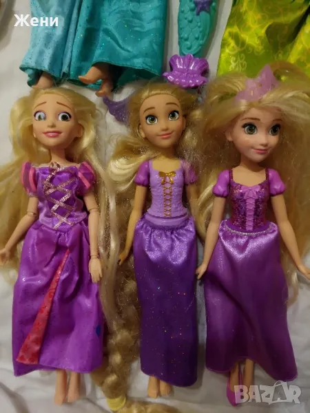 Всички кукли са на марката Hasbro/ Disney и са в много добро/отлично състояние. Цената е 10 лв за брой облечена кукла. Само Рапунцел с подвижните стави е 15 лв. Ариел с пластмасова опашка и Рапунцел с екстра дълга коса са продадени. Голите по 7 лв, роклите по 4 лв. При интерес ще направя индивидуални детайлни снимки. При покупка на няколко - отстъпка.