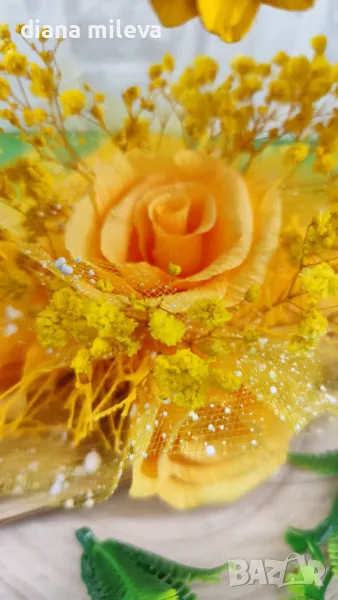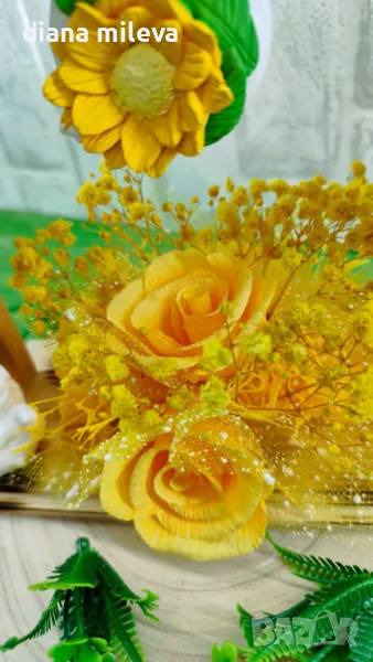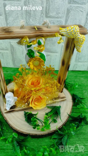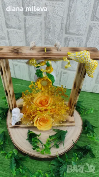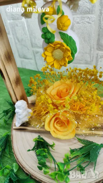 Дървена рамка с декорация в жълто!! → Обява 49136339