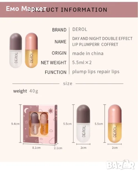 Комплект 2 броя гланцове за устни за дневна и нощна грижа за по-плътни устни.
