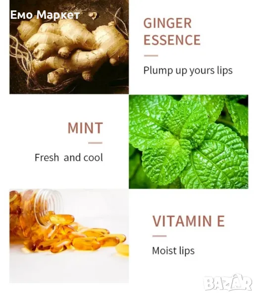Комплект 2 броя гланцове за устни с джинджифил, мента и витамин Е за грижа през деня и нощта.