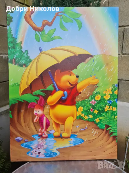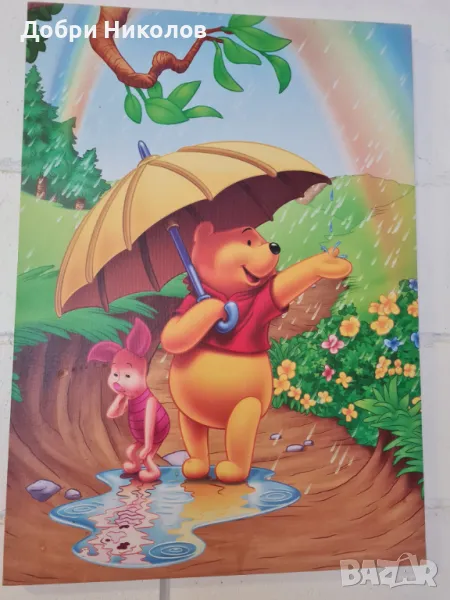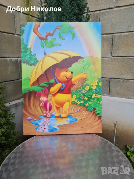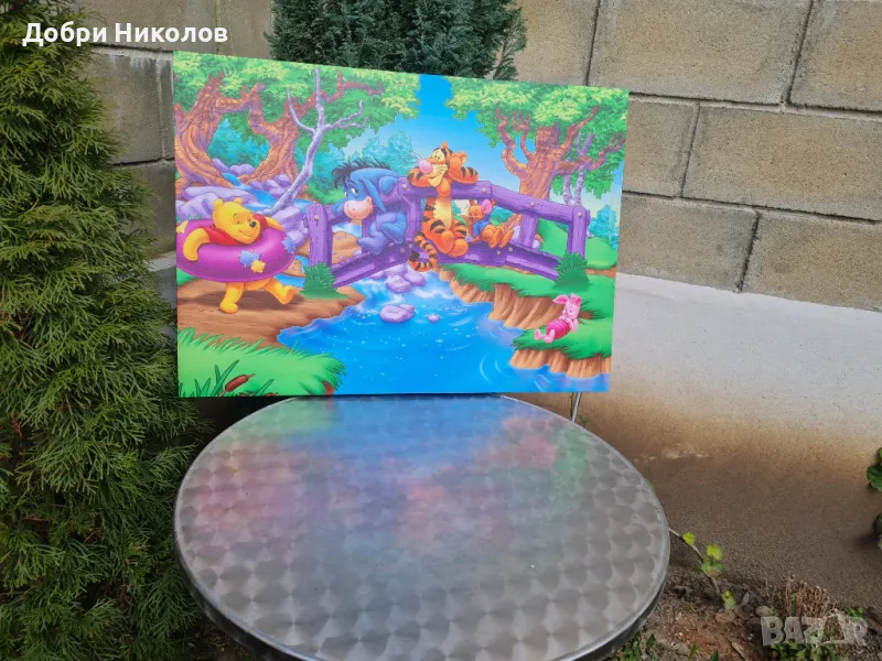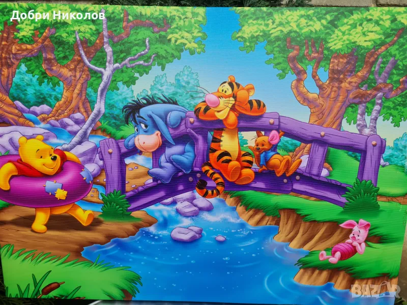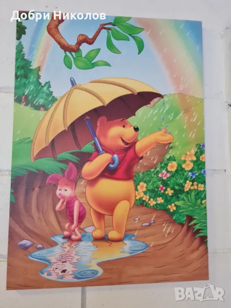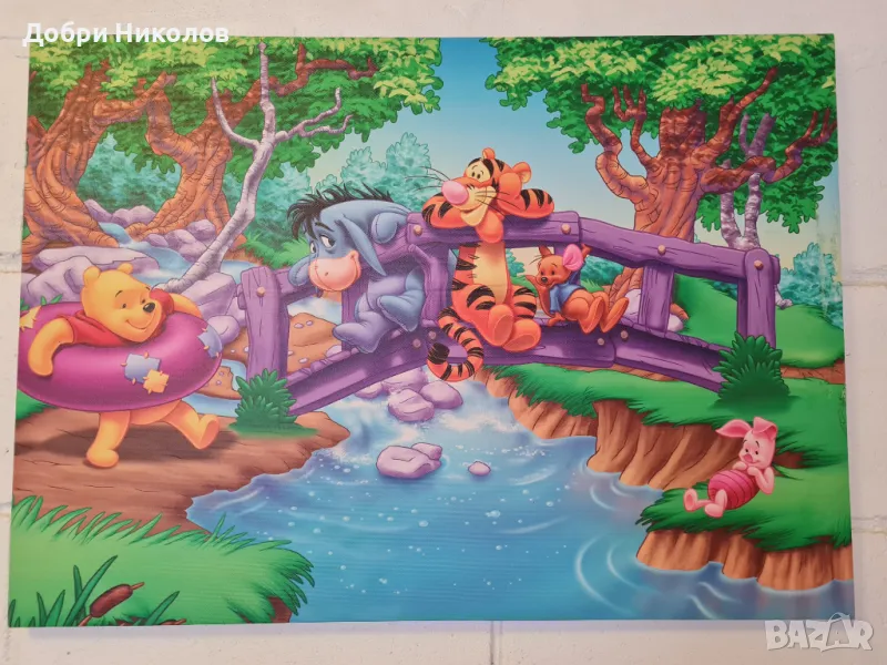 Картина Мечо Пух и приятели. Репродукция отпечатък на винил. Размери 70х50 см. Дървена рамка. Състояние и размери – видни
