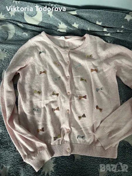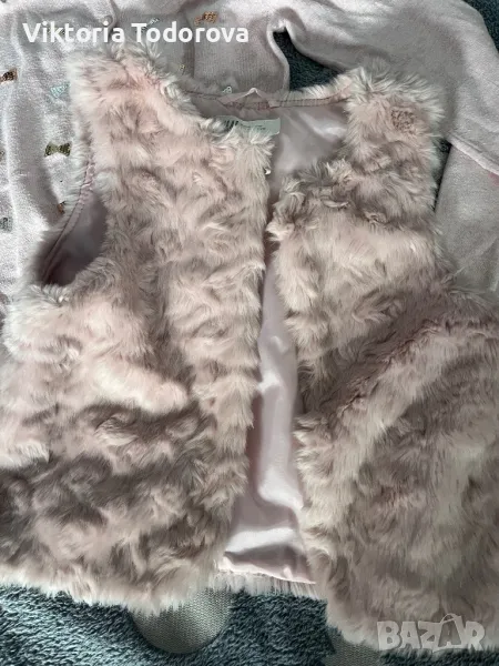 Страхотен розов сет за малка принцеса - пухено елече, жилетка, плюшена блузка. 8-10 години. Без забележки.