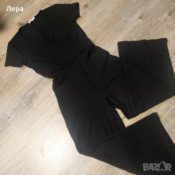 Елегантен модел дамски гащеризон на марката Stradiwarius. Еластична материя. С широко деколте и къс ръкав. От мишнижа до мишница от 45 до 70 см, Талия от 35 до 54 см, ханш от 52 до 82 см. Висока талия. От талията до долу 97 см, ширина на крачола 32 см. Няма забележки. Изпращам с преглед и тест по Еконт с отстъпка от цената на доставката.