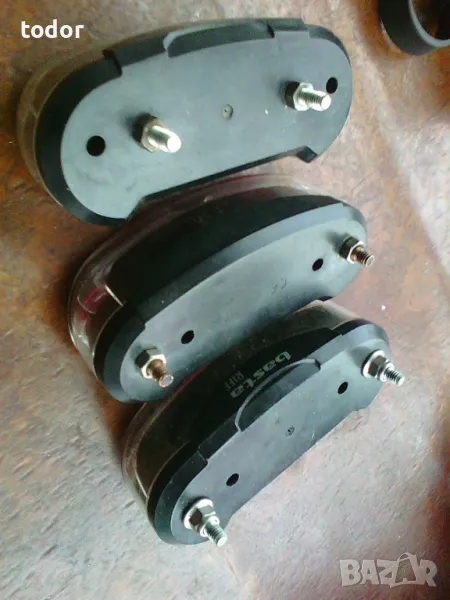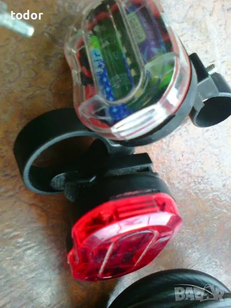 комплект предна и задна,светещи.три броя стопчета за багажника заредени с нови батериѝки по 2 бр. в стопче.едното е с 2 режима на светене-10лв,броѝката.заклучалката не е налична.