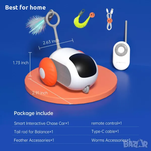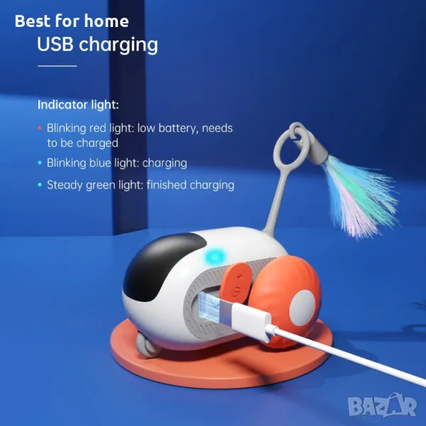 【Интелигентно избягване на препятствия】: Интелигентната интерактивна играчка за котки е оборудвана с вградени интелигентни сензори за движение и автоматична система за избягване на препятствия, може да тича в произволни посоки и да се отдалечава, когато се удари в стена, мебели или други препятствия, поддържайки котката ви развълнувана, като остава непредсказуема. Когато срещне препятствия или тесни участъци, той може да направи заден ход и да се отдалечи, за да предотврати засядане в завоите.