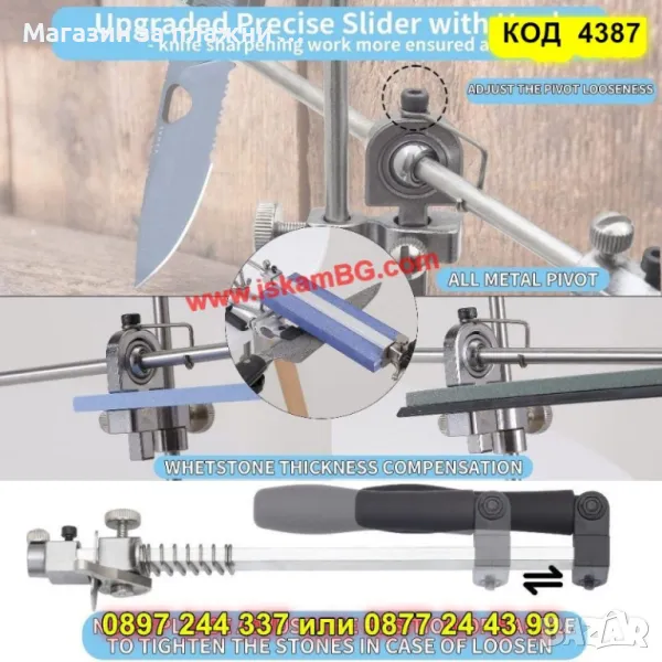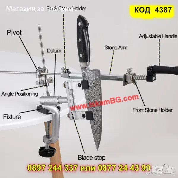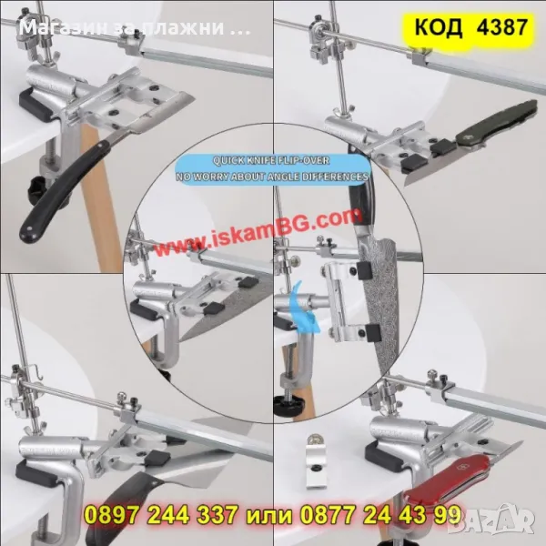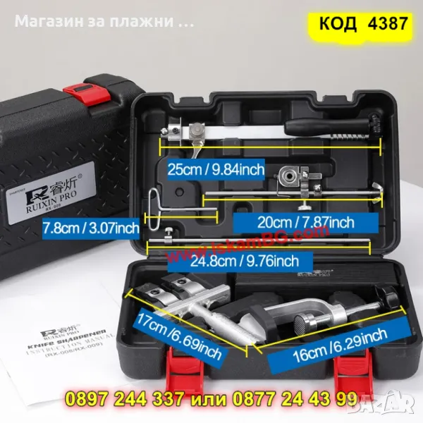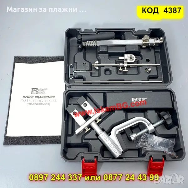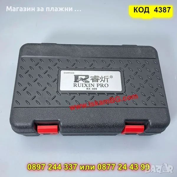 Ruixin Pro RX-009 професионална система за заточване на ножове, ножици, остриета за ренде, градински инструменти и др. Уредът позволява заточване или смяна на острието под желания от Вас ъгъл. Голям плюс на тази система е възможността за завъртане на ножа в скобата, без да се налага да го откачате. По този начин спестявате време и няма нужда да настройвате отново ъгъла, за другата страна.