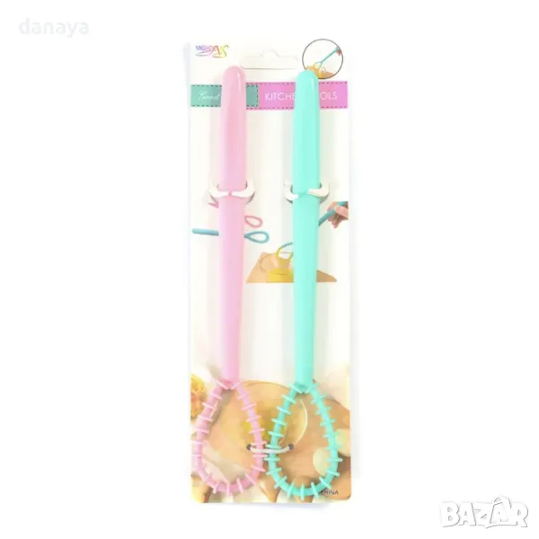 Цветни кухненски бъркалки за яйца – комплект от 2 броя (розова и зелена). Изработени от здрава пластмаса с дължина 20 см, тези бъркалки са идеални за лесно и ефективно разбиване на яйца и други съставки. Ярките цветове ще внесат весело настроение в кухнята, докато същевременно осигуряват удобно и практично използване. Перфектен избор за всеки дом!
