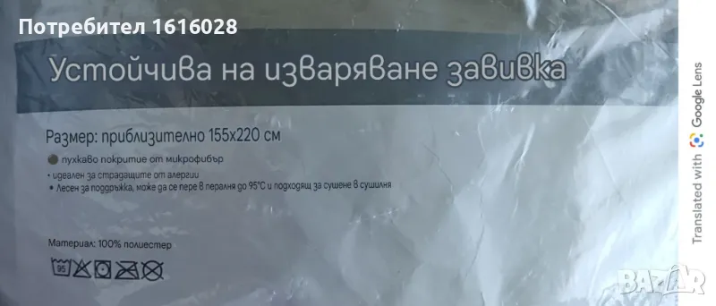 1 олекотена завивка с размери 155 см./ 220 см.