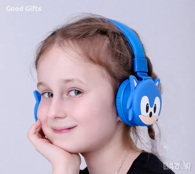 Безжични Bluetooth слушалки Соник Sonic за деца, aнимационни, сгъваеми и регулируеми, вграден микрофон