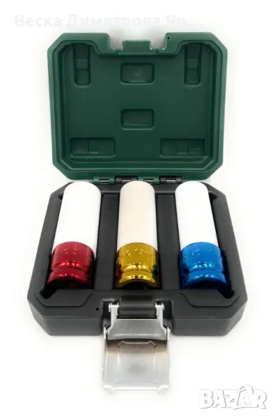 Материал: Хром-молибденова стомана със защитно пластмасово покритие;Размери: 17 мм, 19 мм, 21 мм;Приложение: Подходящи за ударни и динамометрични ключове с 12,5 мм (½") държач;Максимален капацитет на натоварване: 1000 Nm (краткотрайно);Качество: Тествано в специализирани лаборатории.