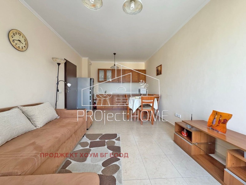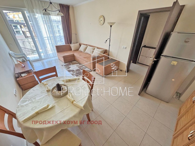 PRОject HOME/ Проджект хоум има удоволствието да Ви представи обзаведен двустаен апартамент в много добро състояние в затворен комплекс в к.к. Слънчев бряг. Апартаментът се състои от коридор, хол с кухненски кът, трапезария, спалня, санитарен възел и тераса. Издава се напълно обзаведен и готов за живеене. Жилището се намира в затворен комплекс с басейн и контролиран достъп. Годишната такса поддръжка е 10 евро на кв.м. Подходящ е както за целогодишно живеене, така и с цел инвестиция за отдаване под наем.