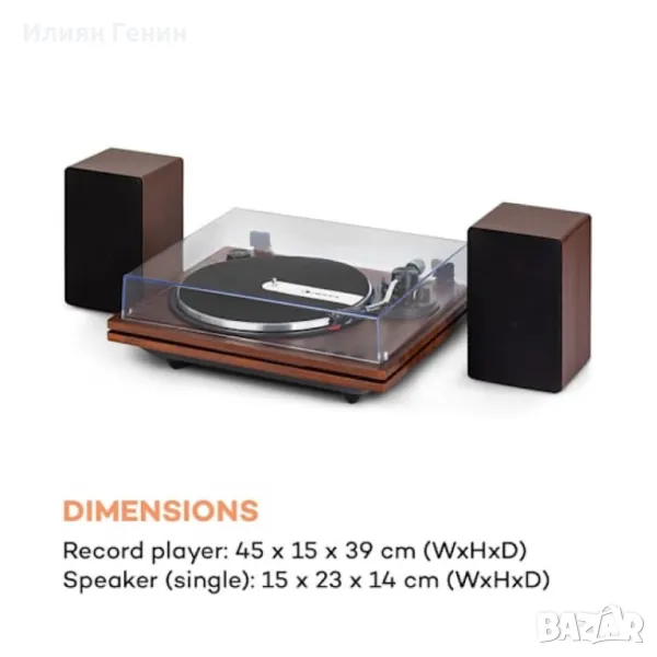 Грамофон: 45 x 15 x 39 cm (Ш x В x Д), тегло: 4 кг