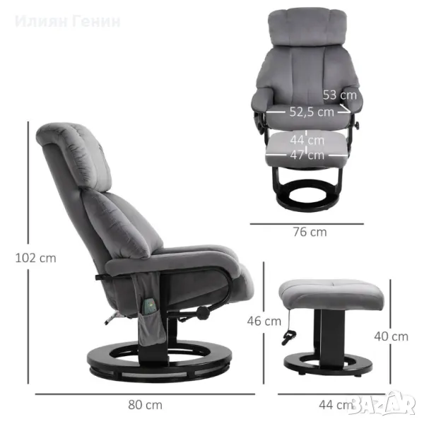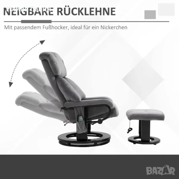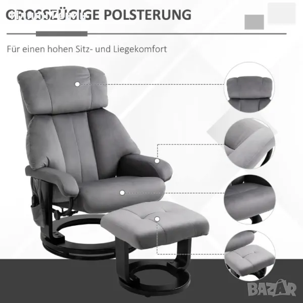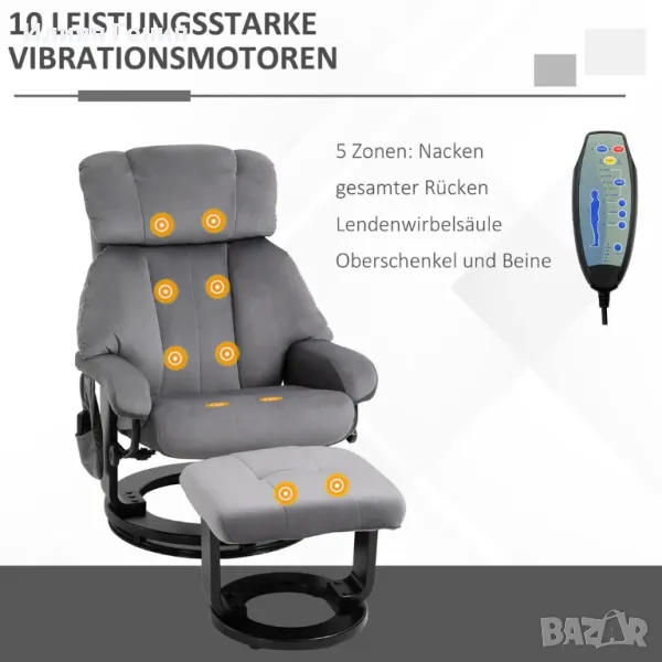 С приятен масаж: Общо 10 вибрационни точки осигуряват успокояващ масаж. Има 6 вибрационни точки в облегалката, 2 в седалката и 2 в табуретката. Можете удобно да управлявате различните режими на масаж с помощта на включеното дистанционно управление.