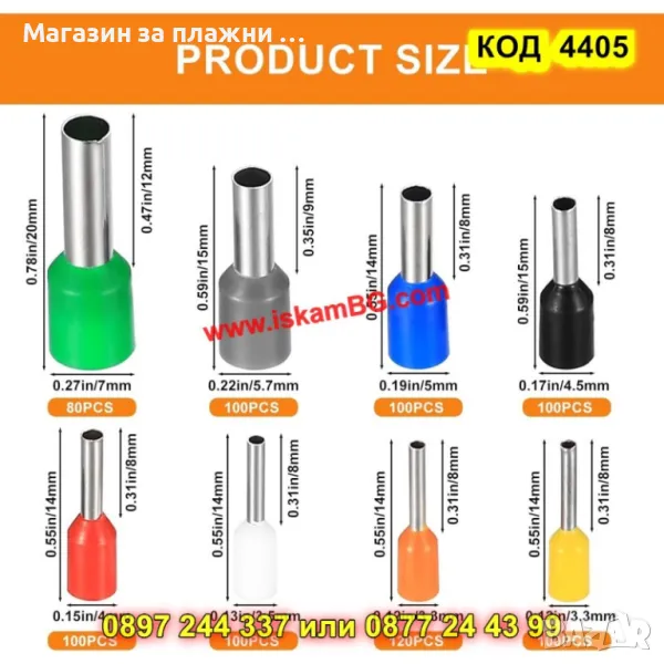 100 броя Е2508 изолирани кабелни обувки - сини