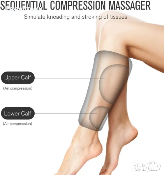 FIT KING Масажор за крака с въздушна компресия за прасци и стъпала, за релаксиращ масаж на фотьойл