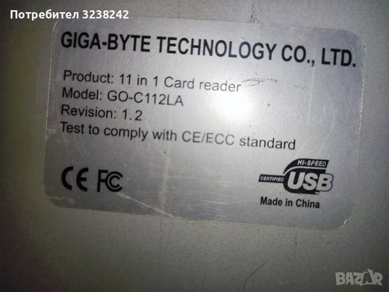 Продавам card reader външен четец на паметни карти свален от работещ компютър тъи като не се ползва.