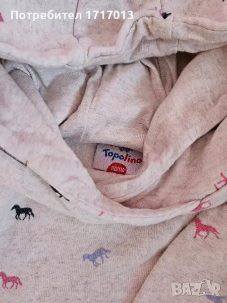 Продавам детска туника с качулка на марката Topolino, подходяща за преходния сезон. Ватирана.
