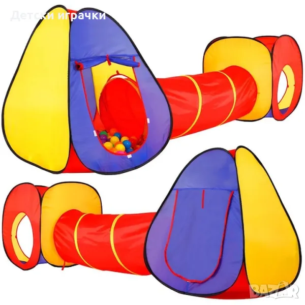 Детската палатка 3в1 е не само място за игра, но и обект, който интензивно развива въображението, дава усещане за сигурност и повишава физическата активност както у дома, така и на открито. Сгъваемата къщичка от плат осигурява страхотно забавление за най-малките!