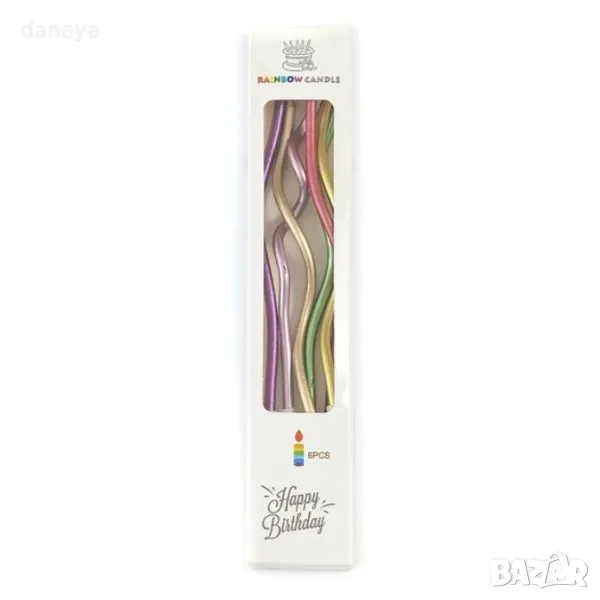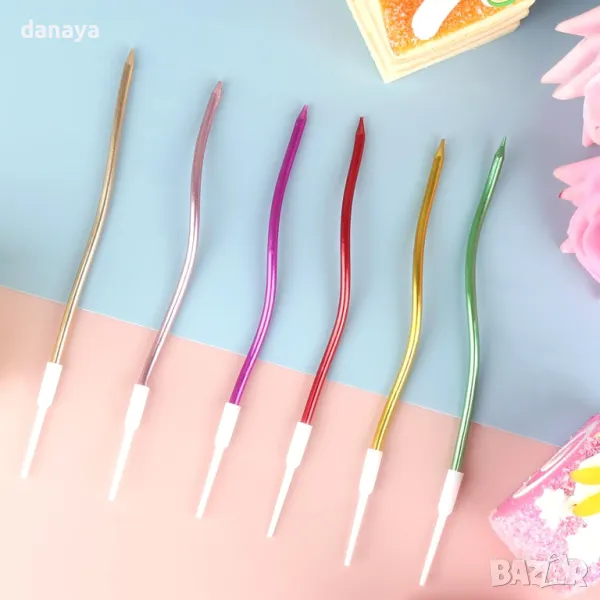 5756 Комплект шарени спираловидни свещи за торта, 6 броя