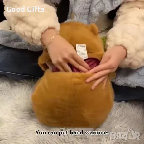 Термо плюшена играчка Капибара против колики, менструални болки и мускулни болки с отделения за ръце , където можете да затоплите ръцете си в студените зимни дни.