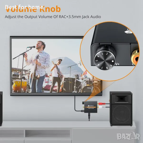 【DAC конвертор】 Той преобразува коаксиални или Toslink цифрови аудио сигнали в аналогово L/R аудио и е наличен за свързване към външно устройство, изход за многоточкова връзка RCA L/R и 3,5 mm жак едновременно, можете да възпроизвеждате музика и да споделяте по едно и също време