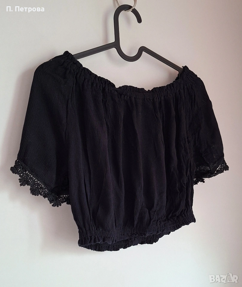 черна къса блузка с голи рамене H&M → Обява 49148331