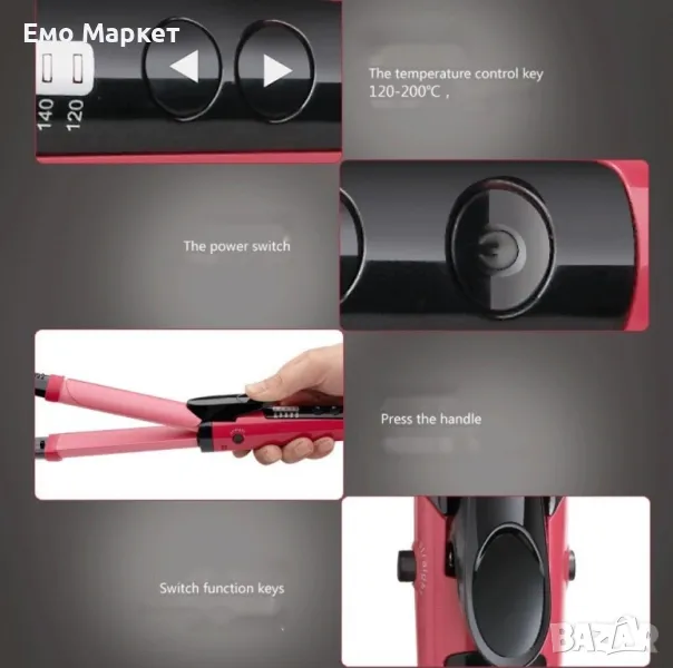 Многофункционална 2 в 1 маша и преса за коса TV821