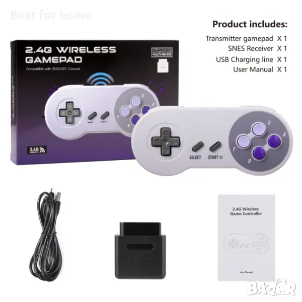 SNES 2.4 G безжичен ретро геймпад за игрова конзола SNES/SFC. (Не поддържа SNES Classic Edition/ NES Classic Edition).